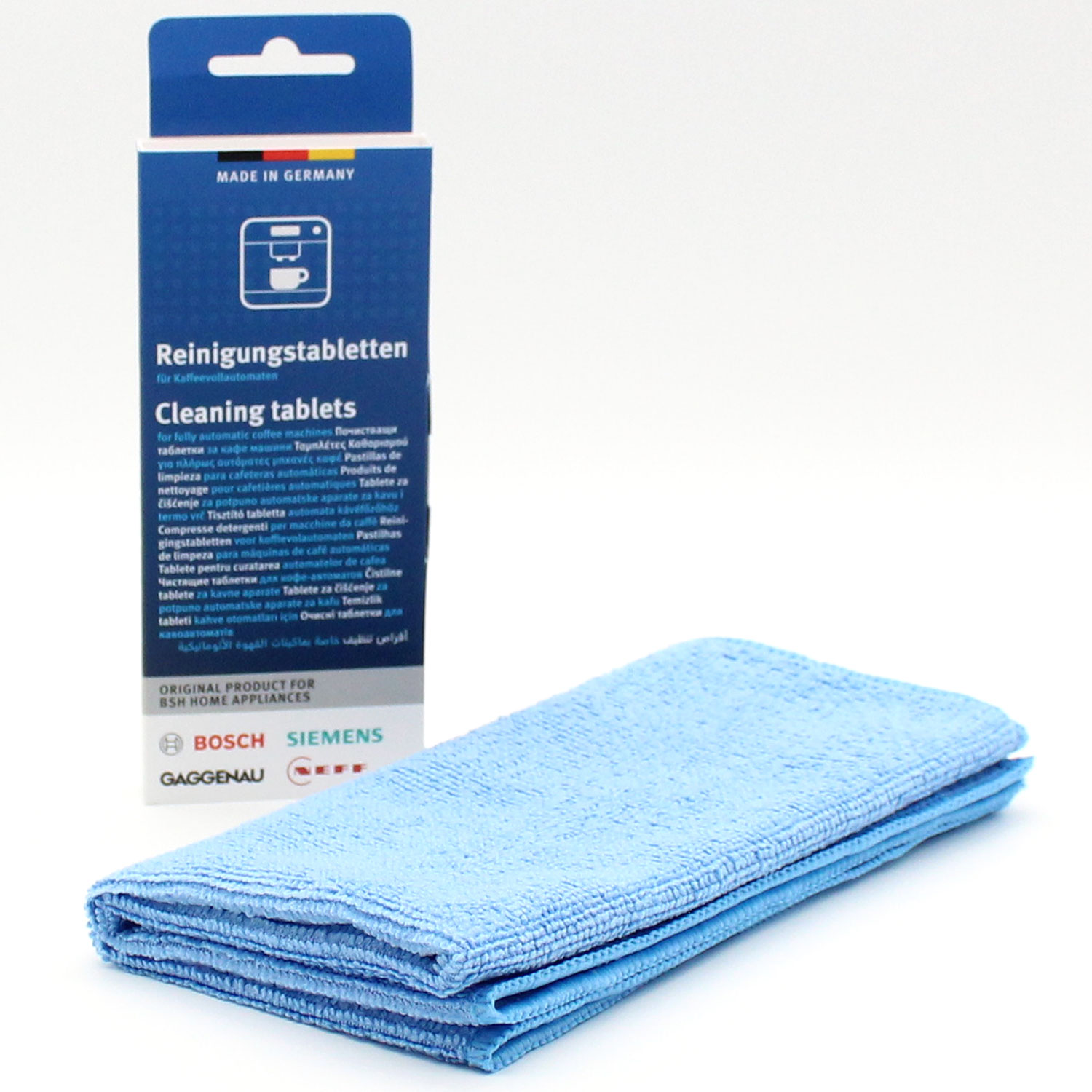 10 Reinigungstabletten für Kaffeevollautomaten + Mikrofasertuch Geeignet für Bosch, Siemens 00312502